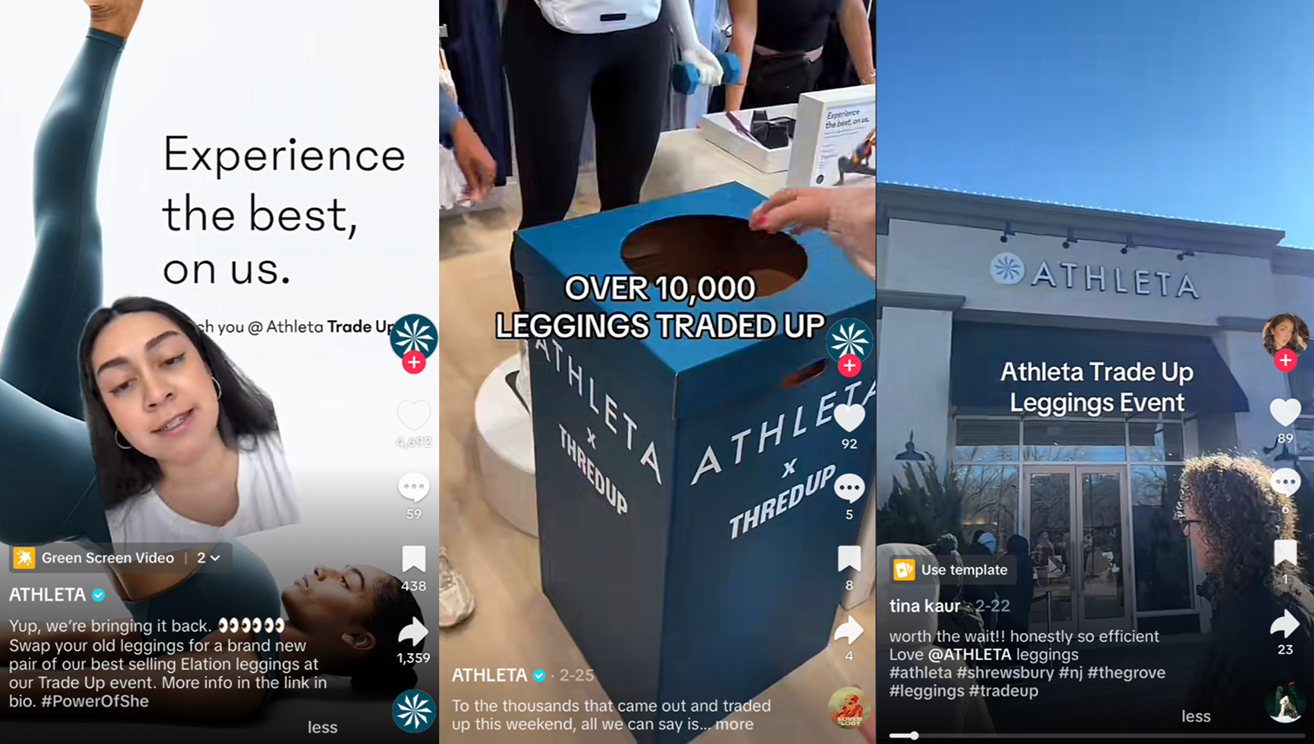 Customers enthusiastically joined the online conversation, sharing their experiences, posting about their trade-ins, their new Athleta leggings, and the excitement surrounding the event. This synergistic blend of Athleta's official communications, influencer collaborations, and overwhelming organic social media buzz served as highly effective, authentic marketing. It reached a wide audience, amplified Athleta's message far beyond traditional advertising channels, and created a vibrant digital community around the event.